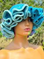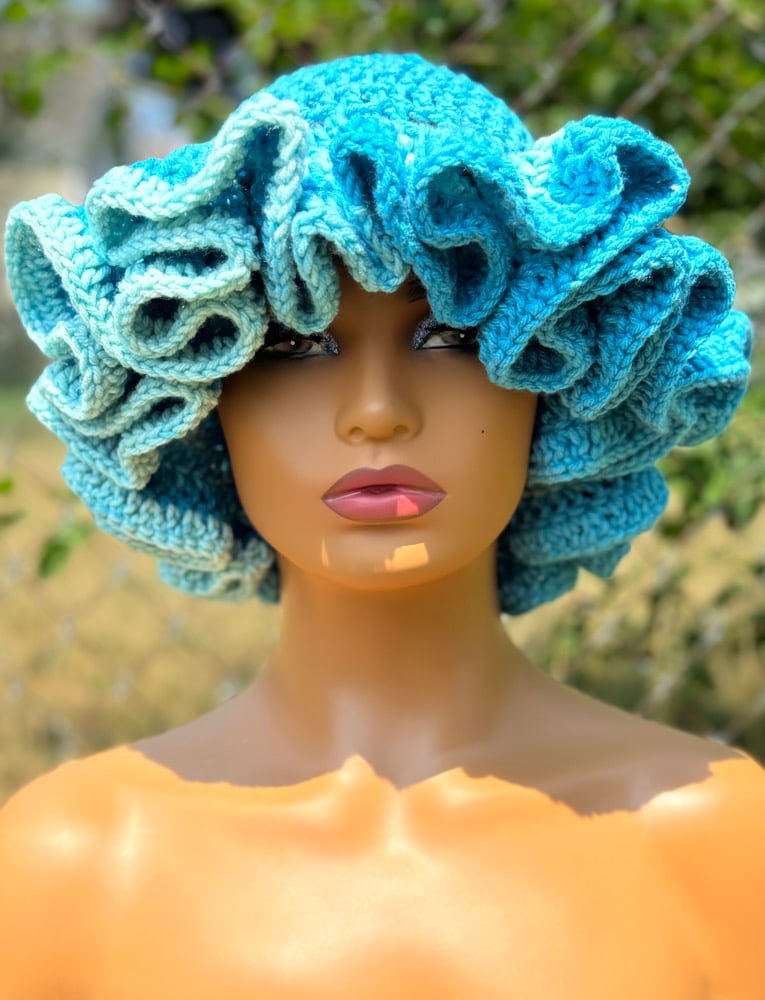 Handmade crochet hat with delicate ruffle edging. Stylish and cozy for all seasons