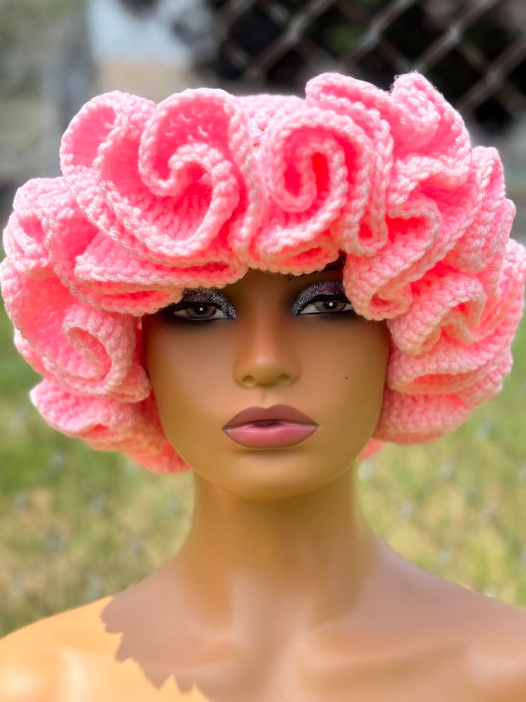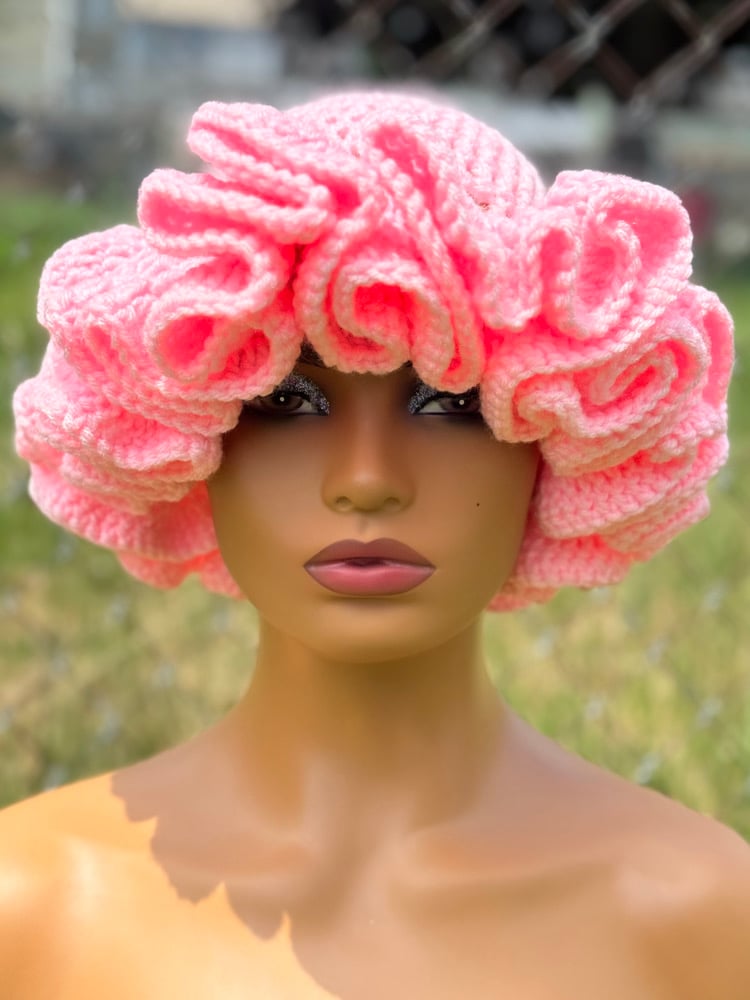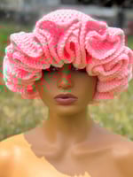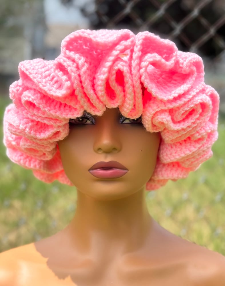 Handmade crochet hat with delicate ruffle edging. Stylish and cozy for all seasons