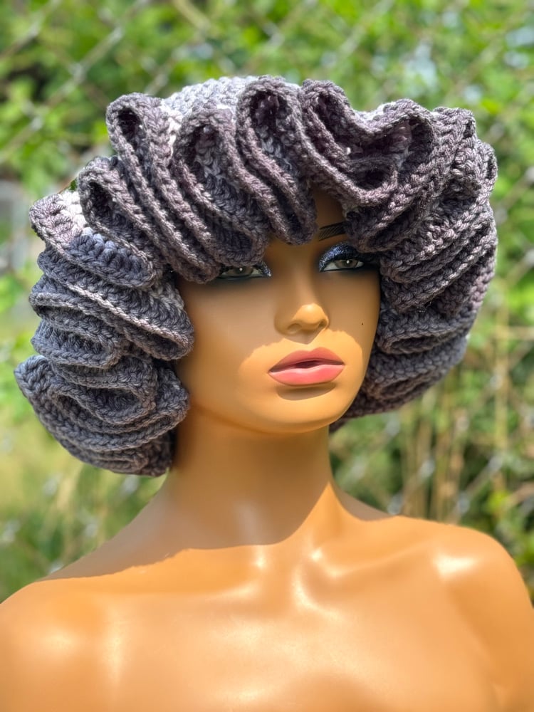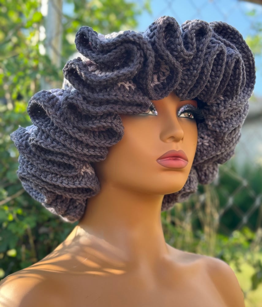 Handmade crochet hat with delicate ruffle edging. Stylish and cozy for all seasons
