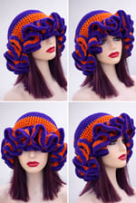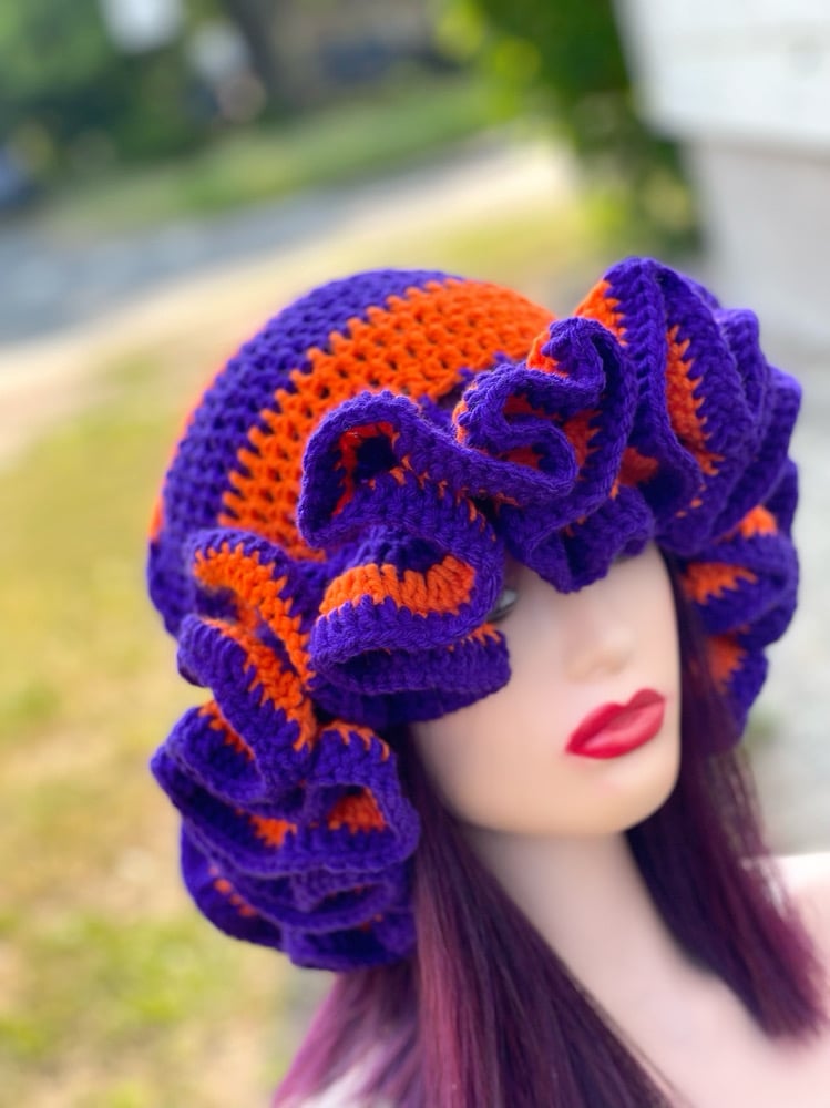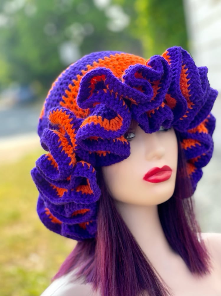Handmade crochet hat with delicate ruffle edging. Stylish and cozy for all seasons